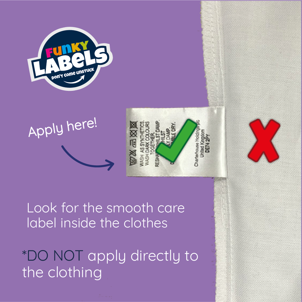 Simply personalise your labels and apply them directly onto the smooth care label inside clothing. Therefore, there is no sewing and no ironing required. Once applied correctly, they stay secure through regular washing and tumble drying.
